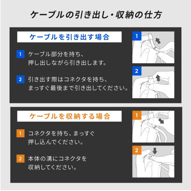 ・充電が便利に。ケーブル一体型のモバイルバッテリー