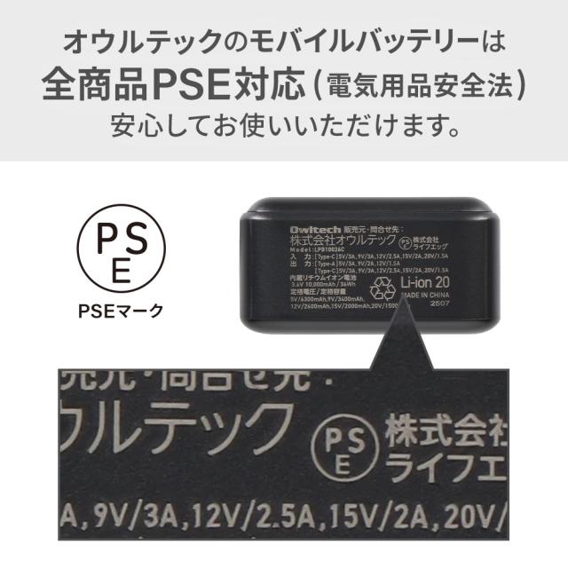 モバイルバッテリー USB Type-C ケーブル一体型 USB Type-A 最大PD30W デジタル表示 3台 同時充電 3A PSE適合製品 owltech オウルテック おうるてっく