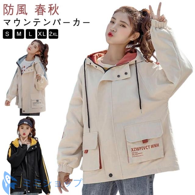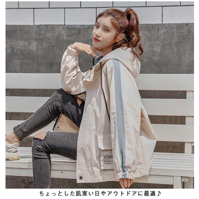 ジャンパー 大きめ 秋 長袖 マウンテンパーカー 春 ブルゾン ウインドブレーカー レディース フード付きミドル丈 10代 アウターゆったり 大きいサイズ 春服 秋物 防風 おしゃれ ライトジャケット 20代 30代 韓国ファッション 原宿系