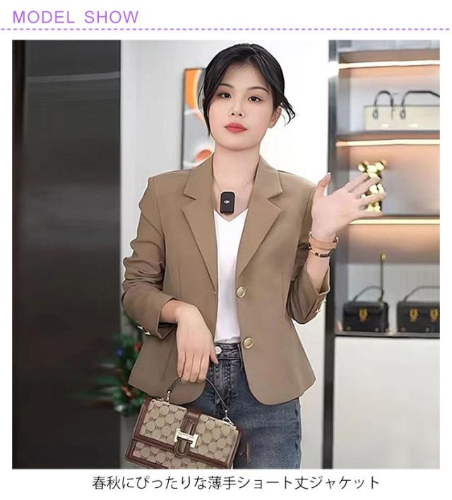 就職活動 無地 レディース 通勤 オフィス 春 秋 スリムフィット ショート丈 韓国風 テーラードジャケット 面接 薄手 ショート丈 大人 上品 ビジネスカジュアル シンプル おしゃれ きれいめ 長袖 スーツジャケット アウター きちんと感