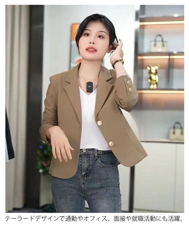 | 通勤や面接に最適なスリムフィットデザイン 春秋にぴったりな薄手ショート丈ジャケット スリムフィットのシルエットで、女性らしいラインを美しく演出。 テーラードデザインで通勤やオフィス、面接や就職活動にも活躍。 無地でシンプルなため、ビジネスからカジュアルまで幅広く合わせやすい。 韓国風の洗練されたデザインで、きれいめコーデにもぴったり。 軽量で長時間着ても快適。 | |