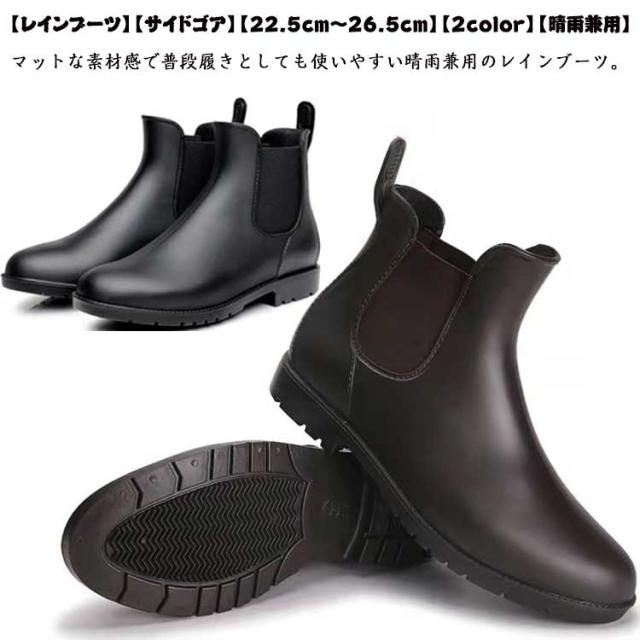 | 【レインブーツ】【サイドゴア】【22.5cm?26.5cm】【2color】【晴雨兼用】 スタイリッシュなデザインで雨の日でもオシャレが楽しめる♪ サイドゴアでなので着脱しやすく、広めの履き口で使い勝手バツグン! やわらかく屈曲性にすぐれ、歩きやすい! 晴れていても違和感なく履けるきれいめなデザインで、急な雨でも水や汚れをしっかりはじく頼もしい防水仕様。 雨や雪の日も安心して履ける滑りにくいソールを採用。 カカト部分にプルストラップが付いているため、脱ぎ履きが楽ちんです。 マットな素材感で普段履きとしても使いやすい晴雨兼用のレインブーツ。 | |
