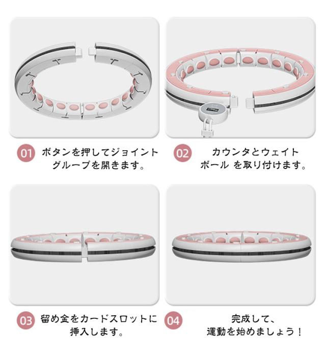 | 【組み立て式スマートフラフープ】【45-100kg以内!3Dシリカゲルマグネット】 【マッサージフラフープ】 360°環腰マッサージ腰を振り、腰腹脂肪を均一にマッサージする毎日30分で、セクシーな腰を持つことができます。 長時間ぐるぐる回っても腰を痛めない親指のような押しマッサージ。 金属留め具は、 激しい運動をしても破断しない。 腰と腹の脂肪を均一にマッサージし、 簡単に脂肪を振って痩せる。 回転数の運動データをリアルタイムで記録し、運動量を科学的に制御する。 密封式静音軸受は、使用時の滑りがスムーズで、騒音が80%低減されている。ボディスライドレール×精鋼ボールベアリングは、 円と弧の高さが一致している。 01.ボタンを押してジョイント グループを開きます。 02.カウンタとウェイトボール を取り付けます。 03.留め金をカードスロットに挿入します。 04.完成して、運動を始めましょう! | |