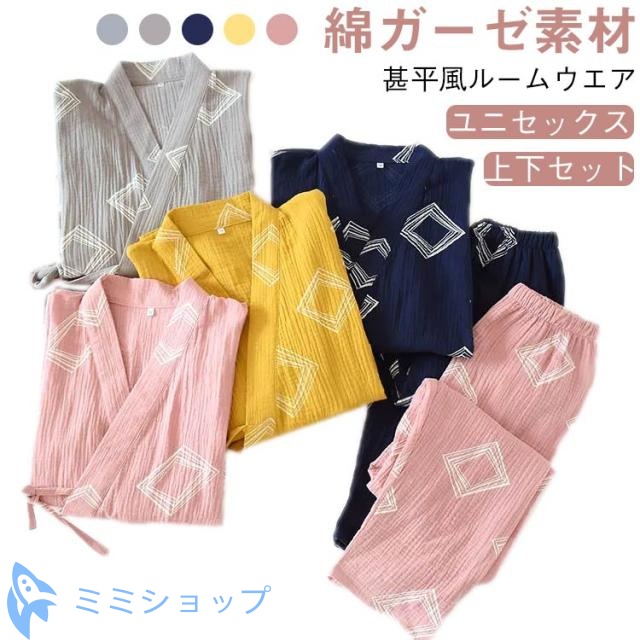 甚平 和風 綿 浴衣 春 パジャマ お風呂 上下セット 前開き 浴衣 女性 ねまき 吸汗吸湿 メンズ 男女兼用 コットン ルームウェア 旅館 部屋着 作務衣 寝間着 秋 レディース 甚平 ホテル 二重 カップル 通気性 パジャマ 夏 M L