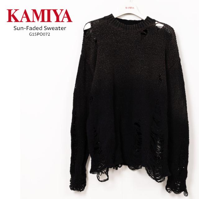 KAMIYA カミヤ Sun-Faded Sweater G15PO072 ニットセーター セーター メンズ レディース ブランド ニット おしゃれ 日本製 長袖 クルーネック 綿100% ローゲージ ダメージ加工 日焼け加工 ゆったり 可愛い かわいい ブラック 黒 2025 春 春夏 夏