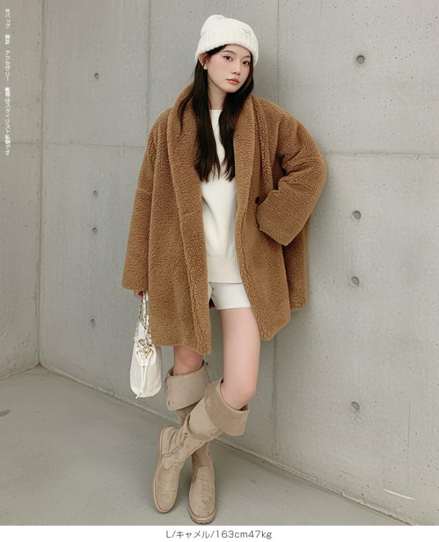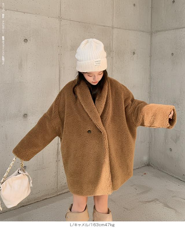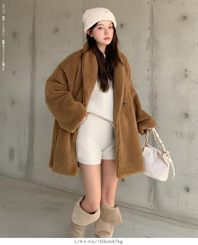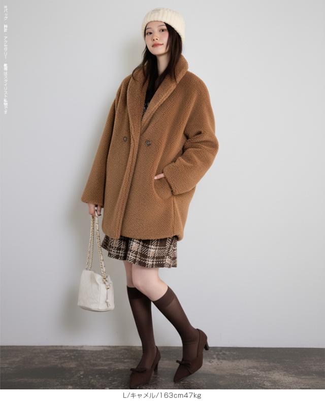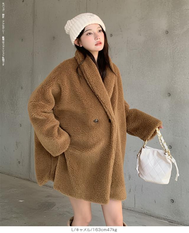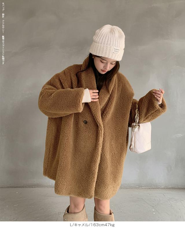 選べる2点で半額!ふんわり もこもこ ボアアウター ビッグシルエットで華奢見え オーバーサイズ ダブルボタン ミドル丈 軽くて暖かい 大人可愛い きれいめ カジュアルにも合う 防寒アウター ボアコート ダブルボアコート 【高見えテディベアコート】 秋新作