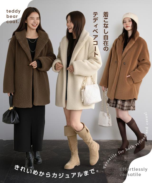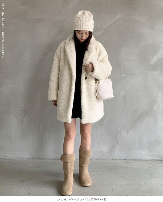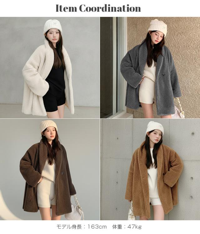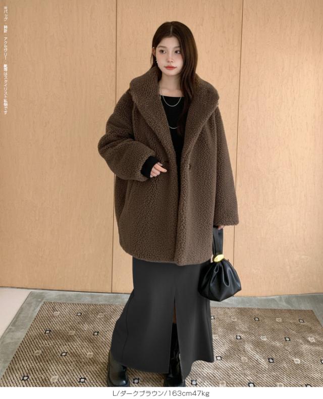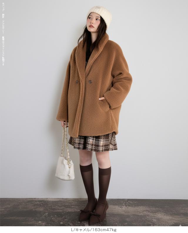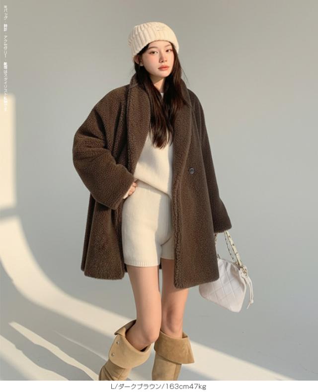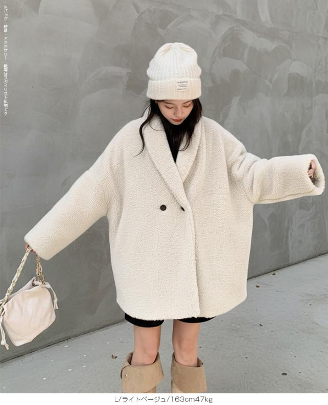選べる2点で半額!ふんわり もこもこ ボアアウター ビッグシルエットで華奢見え オーバーサイズ ダブルボタン ミドル丈 軽くて暖かい 大人可愛い きれいめ カジュアルにも合う 防寒アウター ボアコート ダブルボアコート 【高見えテディベアコート】 秋新作