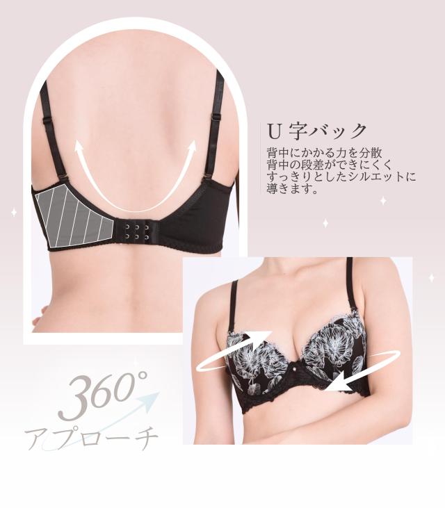 ブラックベースに繊細なフラワー刺繍が映える、ラグジュアリーなブラセット。