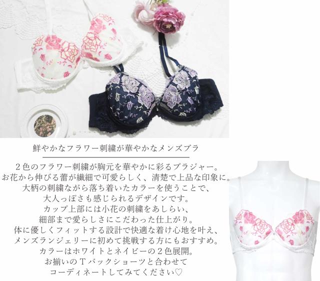 メンズブラ A85-A105 フラワー レース メンズ体型用 パッド入り (JM-6073-B)[メール便不可]【 男ブラ 男性用ブラ 大きいサイズ 下着 ブラ トランスジェンダー 女装 コスプレ 乙女男子 かわいい】