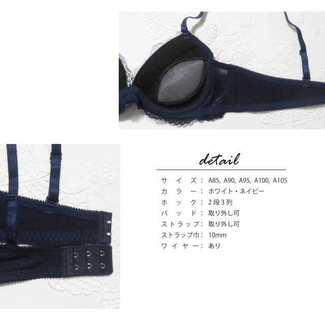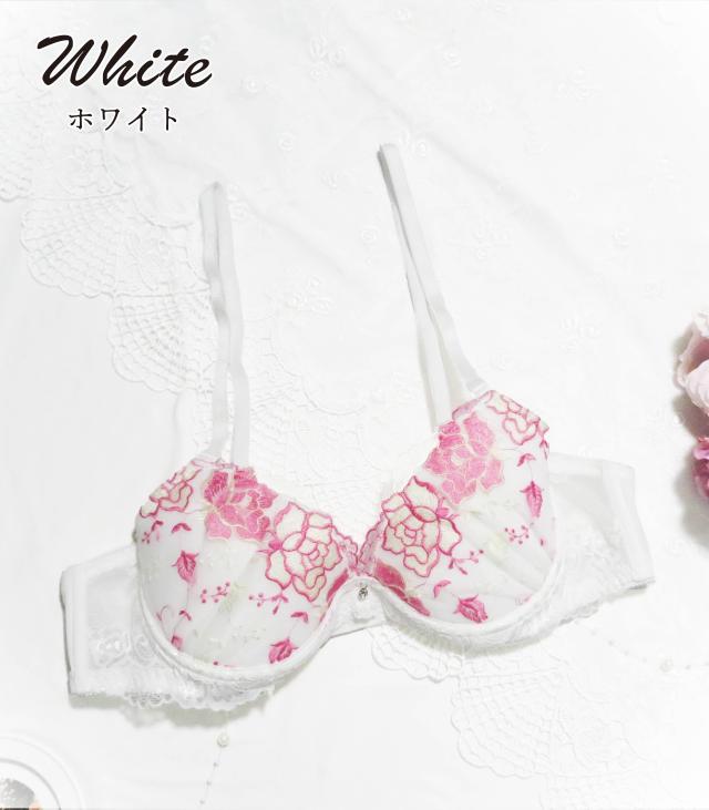 カップ上部には小花の刺繍をあしらい、細部まで愛らしさにこだわった仕上がり。
