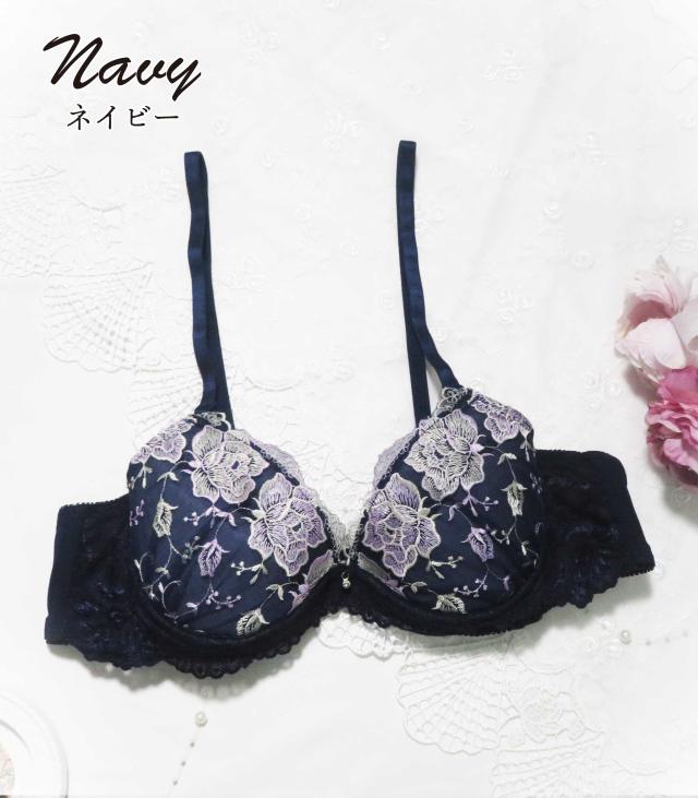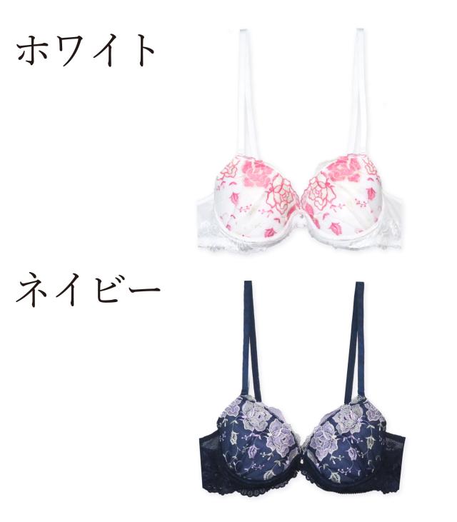 鮮やかな2色のフラワー刺繍が胸元を華やかに彩るブラジャー。