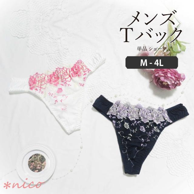 メンズ用 Tバック ショーツ フラワー レース M-4L メンズ体型用 (JM-6073-S)[★メール便OK]【 M L LL 3L 4L 男性用ショーツ 大きいサイズ 男性用 パンティ 下着 男性用下着 ジェンダーレス かわいい】