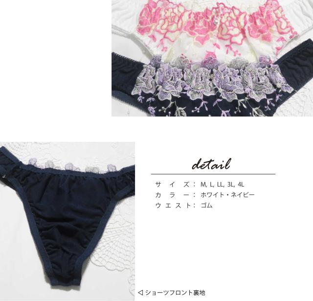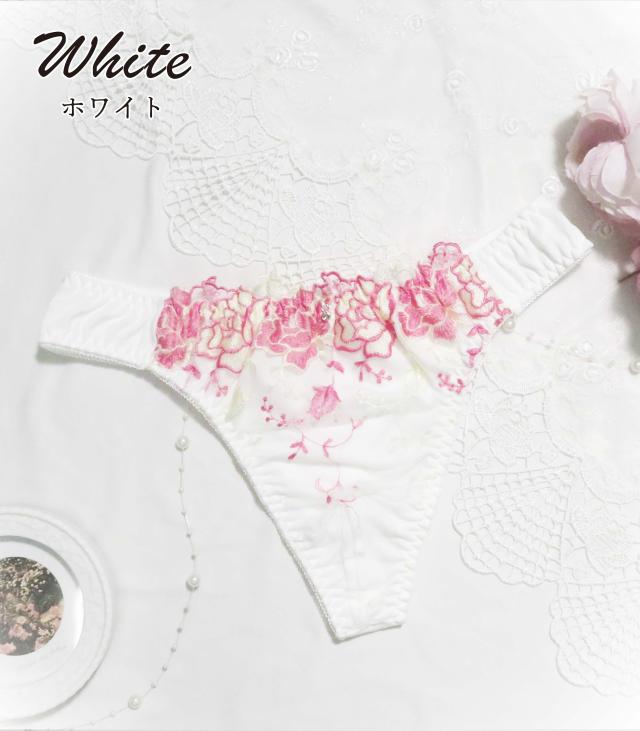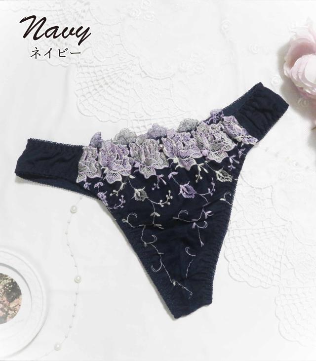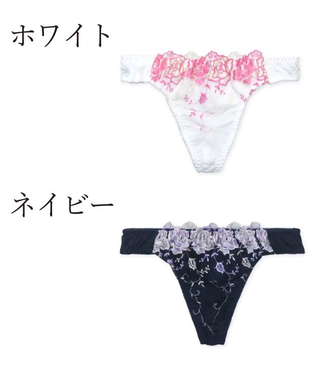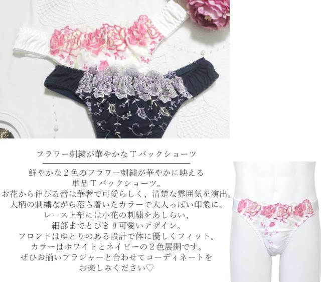 鮮やかな2色のフラワー刺繍が華やかに映える単品Tバックショーツ。
