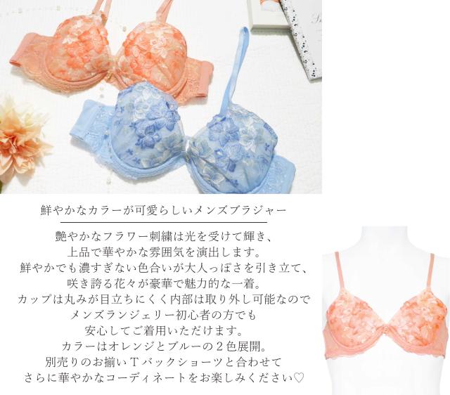 男性用ブラジャー フラワー レース 鮮やか A85-A105 メンズ体型用 パッド入り (JM-7043-B)[メール便不可]【 男ブラ メンズブラ 大きいサイズ 下着 ブラ トランスジェンダー 女装 コスプレ 乙女男子 かわいい】