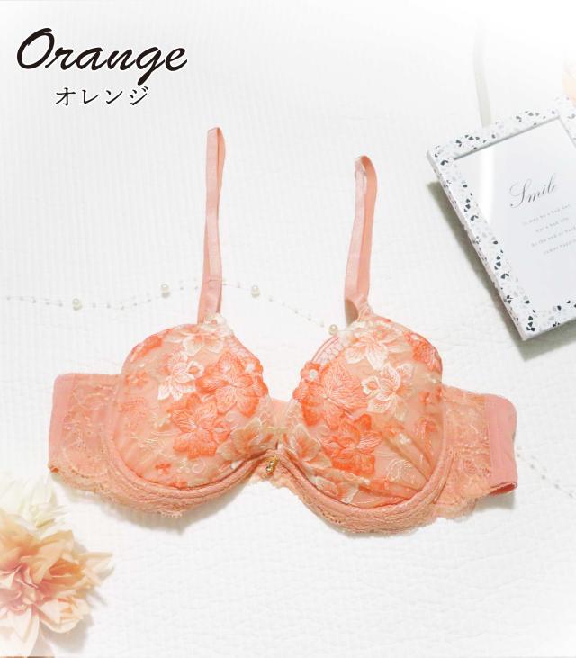 鮮やかなカラーが胸元を彩り、可愛らしく目を引くブラジャー。