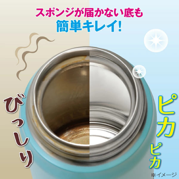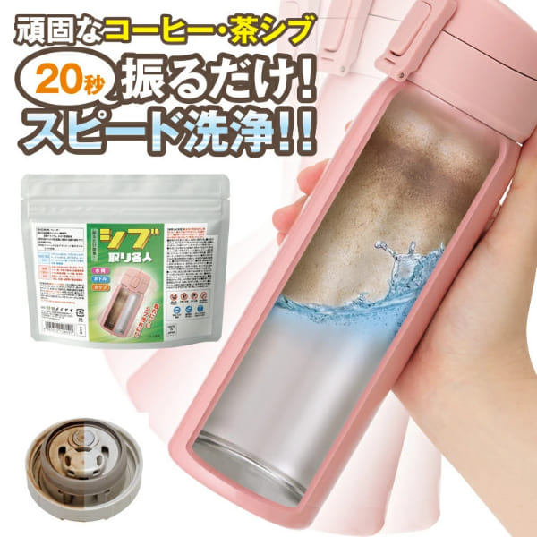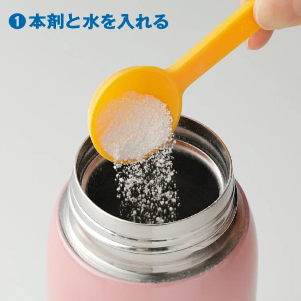 ■ステンレスボトル・タンブラー・水筒に付いた、コーヒー・お茶・紅茶のシブ等々■本剤と少量の水を入れて上下左右にシャカシャカ振るだけ。スポンジの届かないボトルの隅々まで簡単キレイ■酸素系漂白剤だから、ツンとした臭いが容器に残らず、衣服に付いても白くなりません■付け置き洗いも可。フタのネジ部分・パッキンもピカピカ!カップ、急須、湯のみのシブ落としも簡単■除菌効果で、いつでも清潔。毎日の洗浄も振るだけ簡単■500mlの容量で5g使用。40回使えます※5gの計量スプーン付き