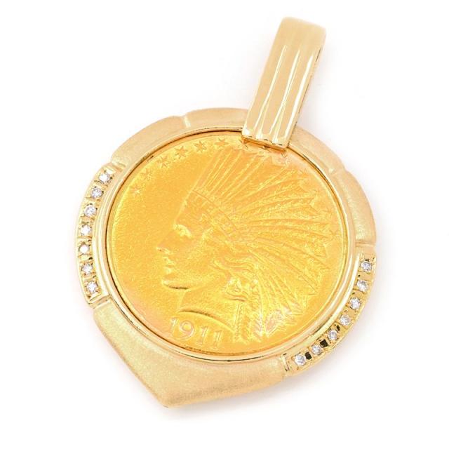 インディアンコインヘッド K21.6YG K18YG ダイヤモンド インディアンコイントップ 金貨 1911年 イエローゴールド 地金27.6g 中古 送料無料