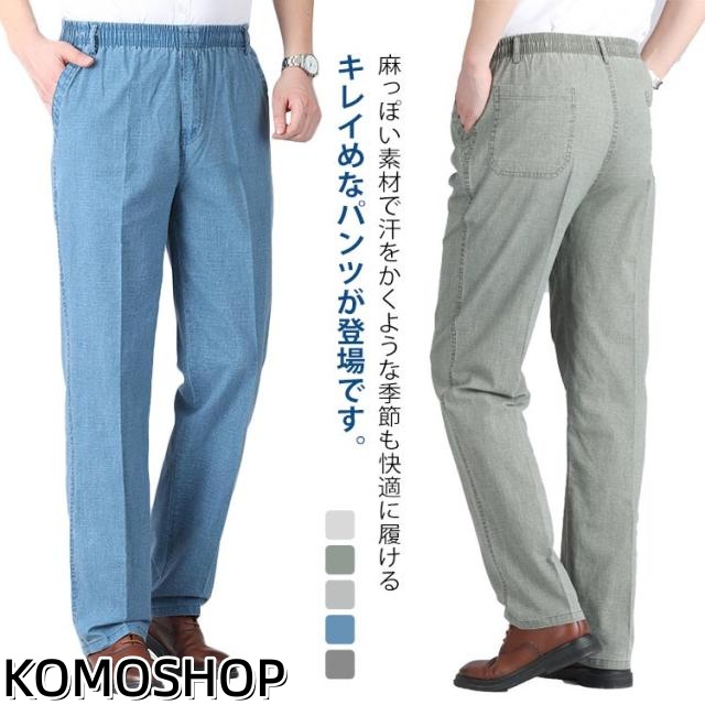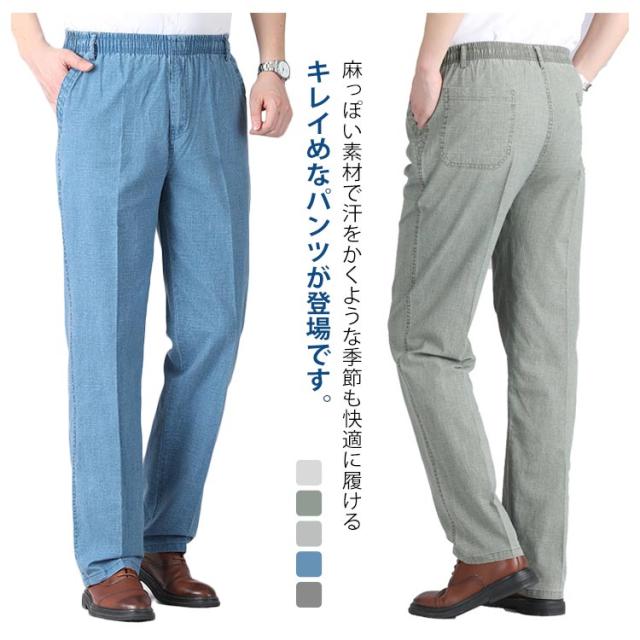 スラックス メンズ ロングパンツ ゆったり リネンパンツ クール レギュラーストレート デニム ジーンズ ストレッチ 涼しいジーンズ イージーパンツ ワークパンツ ゴルフ 作業着 涼しい 冷感 薄手 無地 快適 ボトムス メンズファッション