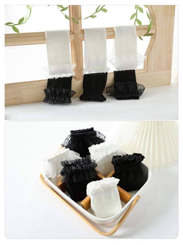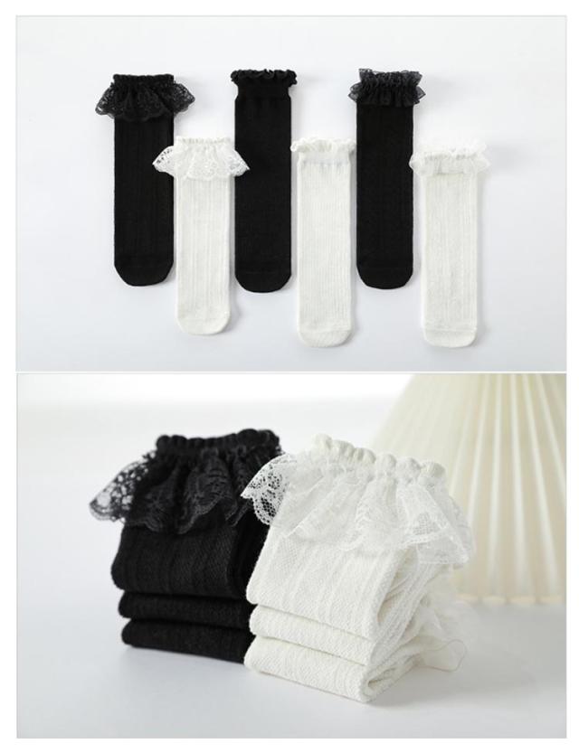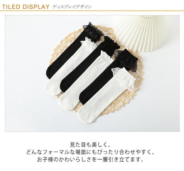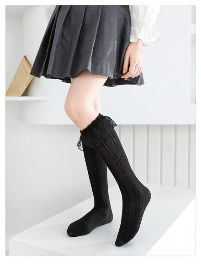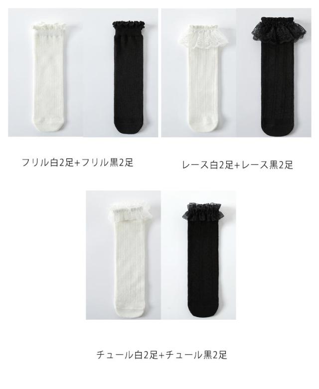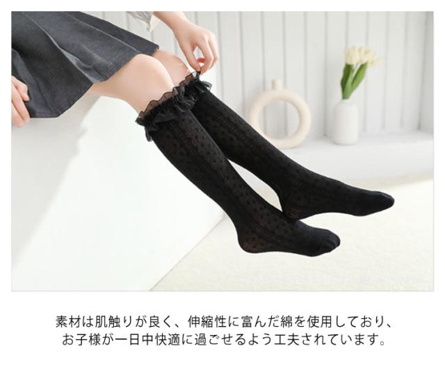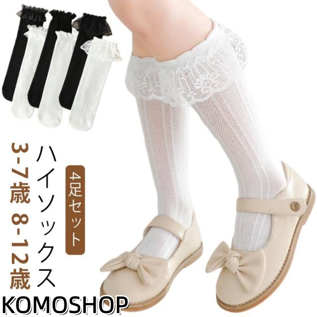4足セット 子供 ハイソックス 薄手 メッシュ キッズ 靴下 女の子 日焼け防止 かわいい 白 黒 フォーマル 無地 ロング 長い おしゃれ レース フリル ソックス 子ども こども 綿 卒園式 入学式 卒業式 発表会 ホワイト ブラック