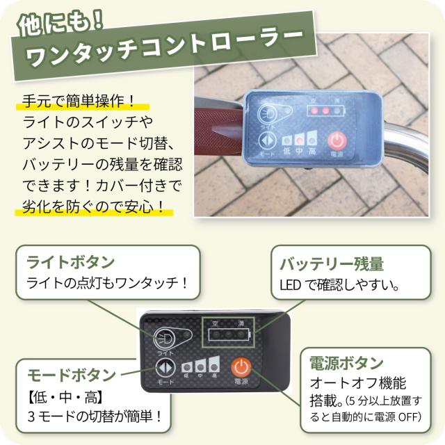 手元で簡単操作。ライトのスイッチやアシストのモード切替、バッテリーの残量を確認できます。
