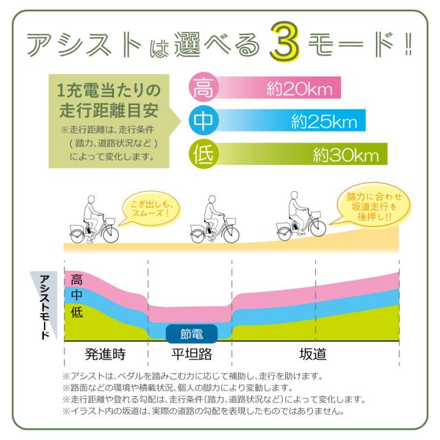従来のサイズより一回り小さくすることで両足が地面に着き、小柄な方やシニア世代の方にも、無理なく安心してご乗車いただけます。さらにアシスト機能がお出かけや買い物の心強い味方に。