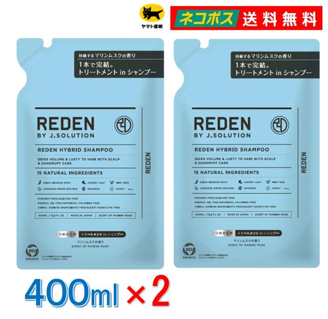 【2本セット 送料無料 】 リデン ハイブリット ・ シャンプー R2 詰め替え 400mL スカルプ ケアー 男性臭ケア トリートメント イン シャンプー メンズ マリンムスク の香り