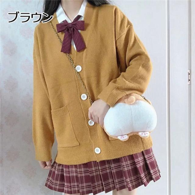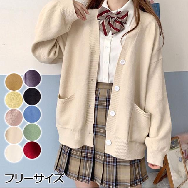 スクールニットカーディガン 学生 通学 レディースファッション 早い者勝ち ブラウン イエロー パープル レッド ブラック ブルー グリーン ピンク ベージュ ホワイト