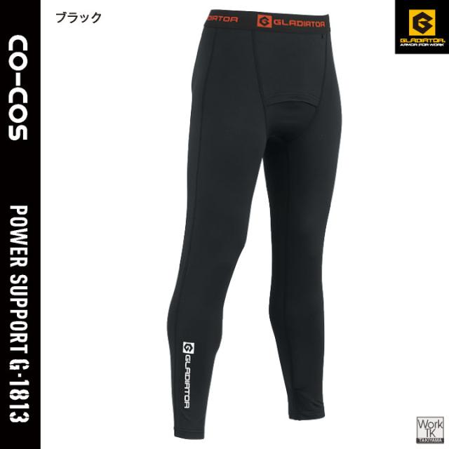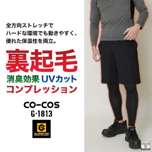 コーコス 裏起毛 ストレッチ インナー パンツ 暖かい 秋冬 防寒 UVカット 消臭 薄手 コンプレッション ロングタイツ レギンス メンズ レディース 作業着 作業服 スポーツ 練習着 ブラック 黒 グラディエーター ネコポス 即日出荷 cc-g1813