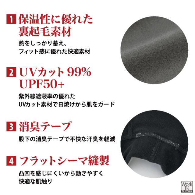 消臭効果とUVカットを備えた裏起毛ストレッチインナータイツ。