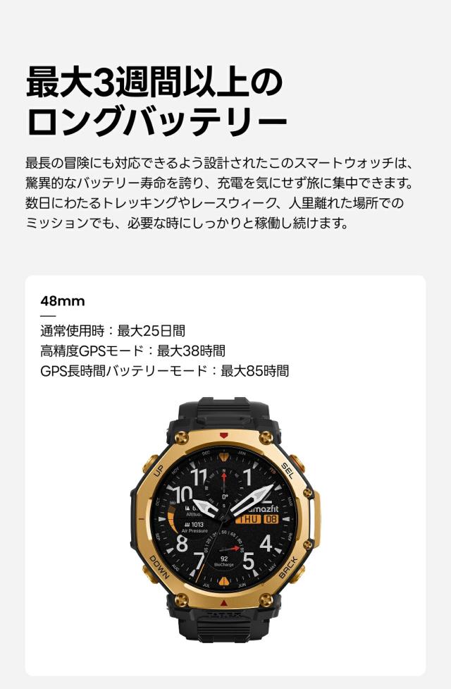 T-Rex 3 Pro は、圧倒的なタフネスと洗練されたデザインで、あらゆる挑戦をサポートします。