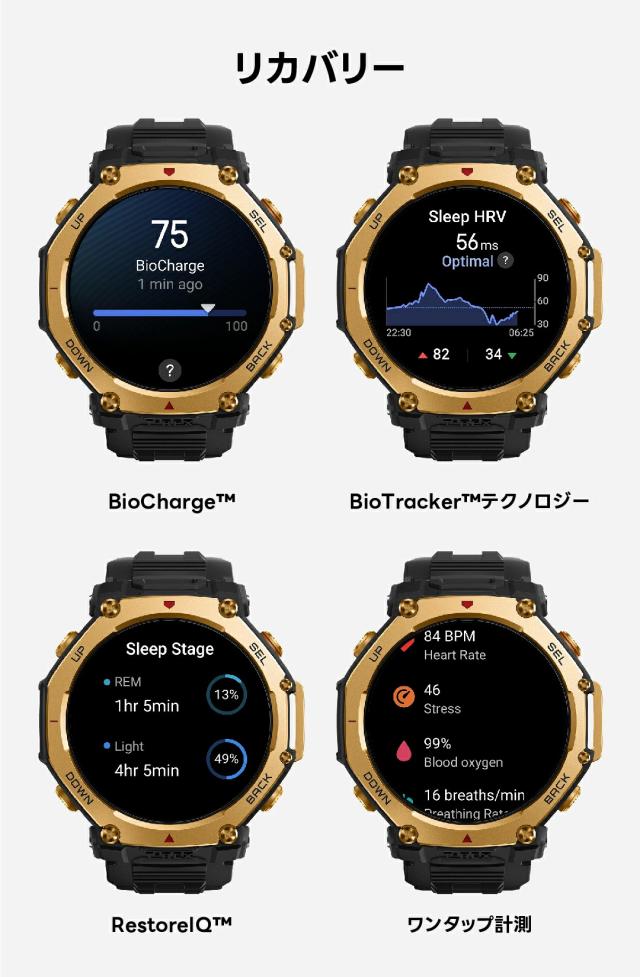 ■24時間モニタリング:心拍数、血中酸素レベル、ストレスレベル