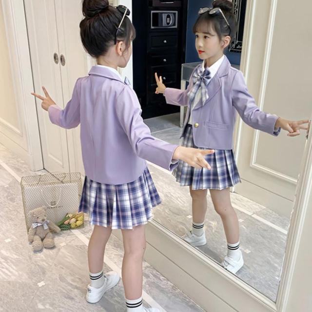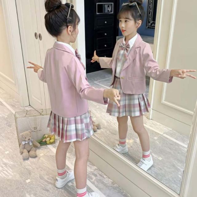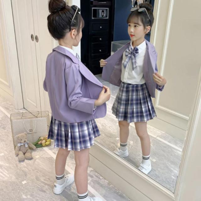 制服 子供 女の子 テーラードジャケッ キッズ ベビー マタニティ 早い者勝ち パープル(3点セット) ピンク(3点セット) 110 120 130 140 150 160