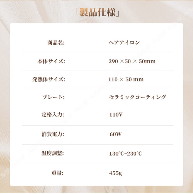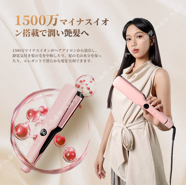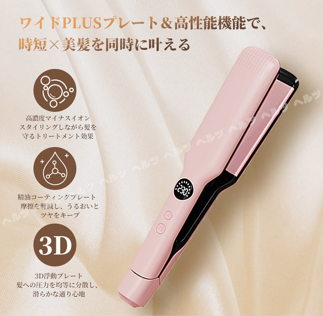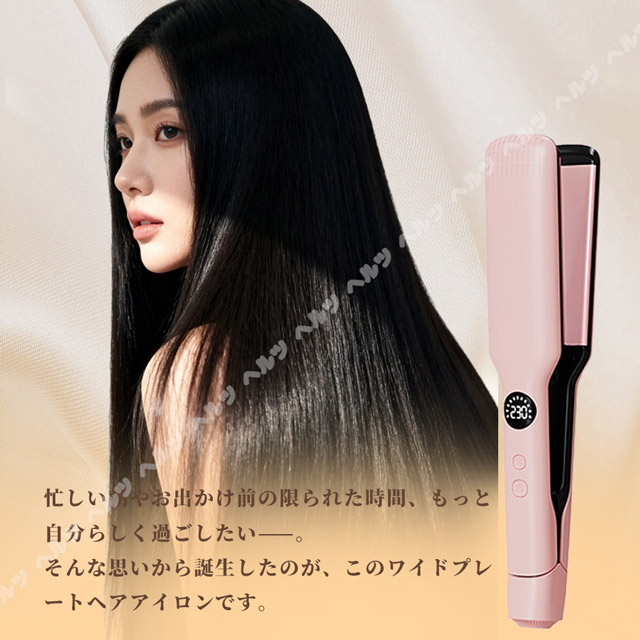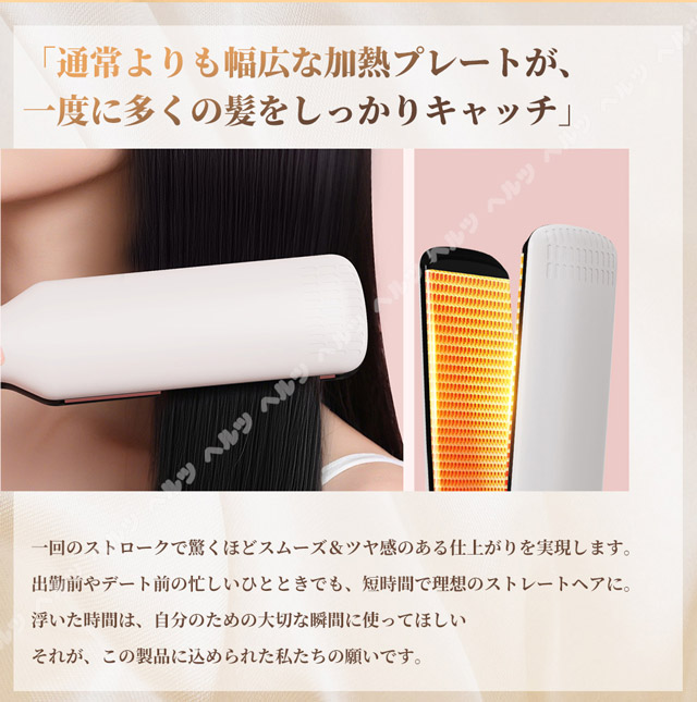 ワイドプレート設計:11cm × 5cm の加?&加?プレートで、一度に広い髪をキャッチ。毛量が多い方・硬い髪質の方にも最適。