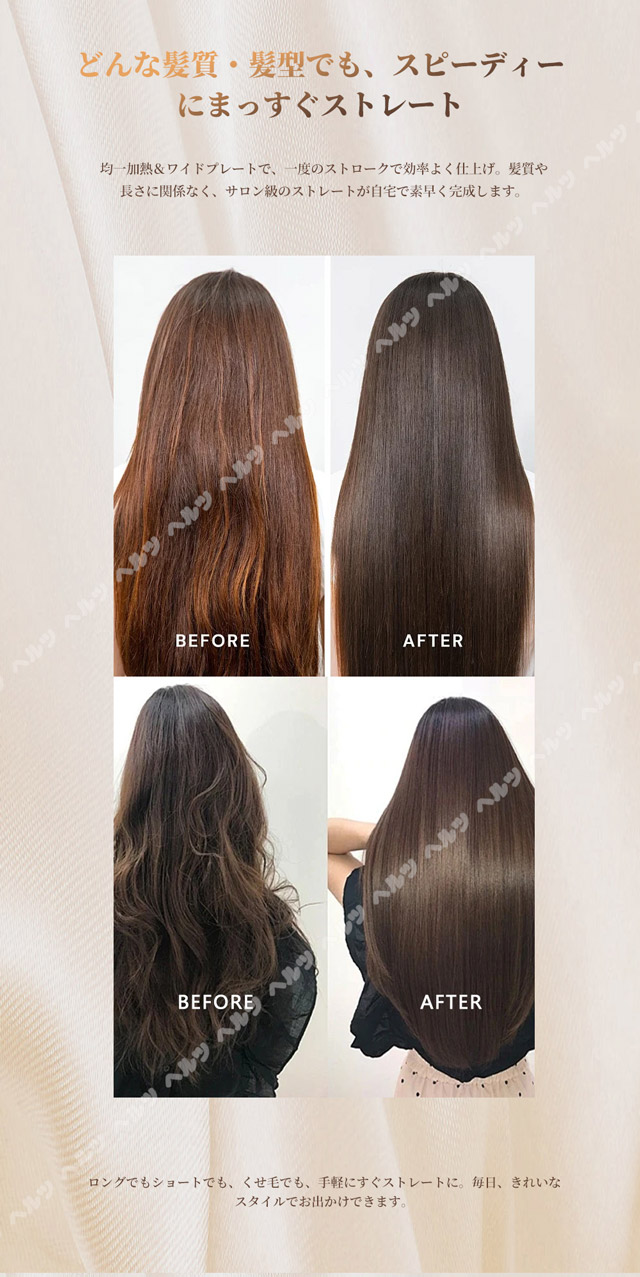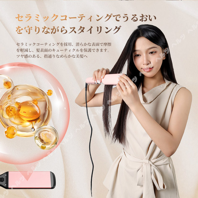 ストレート&ヘアケア兼用:高効率加熱で髪を素早く整えながらツヤをキープ。