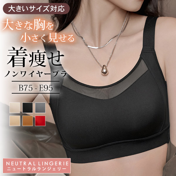 ノンワイヤー ブラ インナー レディース 補正下着 胸を小さく見せる 着痩せ 大きいサイズ 通気性 蒸れない 脇高 ブラジャー 大きな胸 送料無料