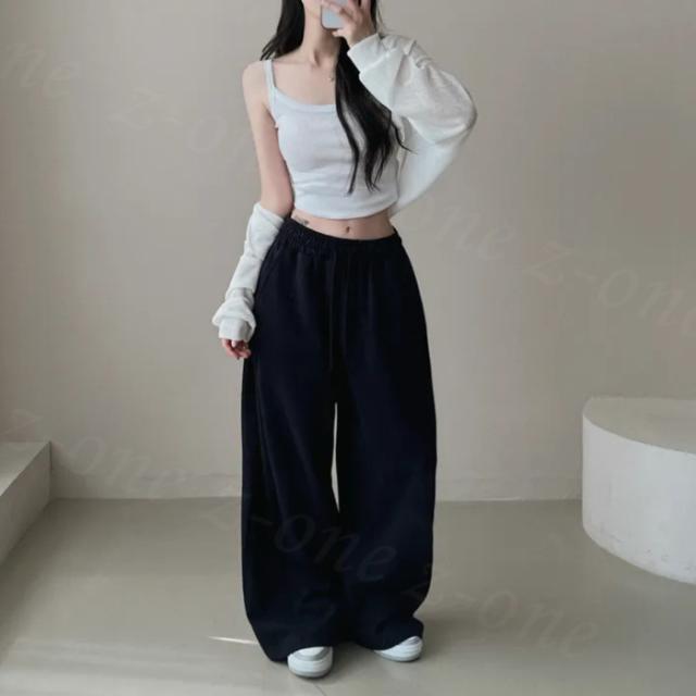 ワイドパンツ レディース パンツ ロングパンツ 長ズボン ズボン カジュアルパンツ ゆったり 無地 オーバーサイズ ダンス 衣装 ストリート系 カジュアル ヒップポップ ボトムス 入学式 入園式