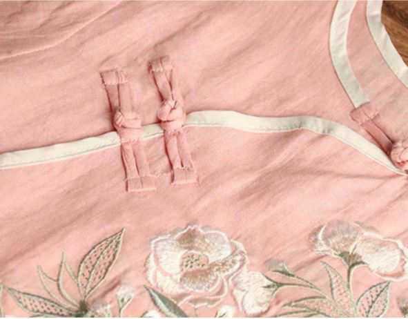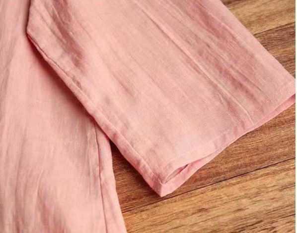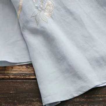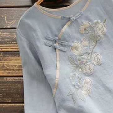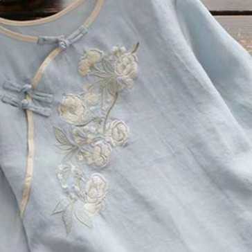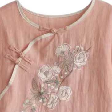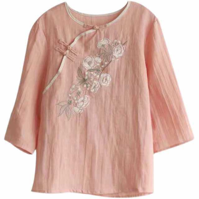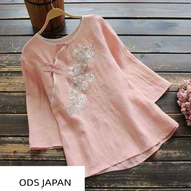 チャイナ風コットンブラウス トップス ブラウス カットソー ミディアム丈 袖あり 7分袖 ラウンドネック ストレート チャイナ風 綿 かわい