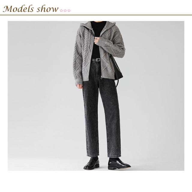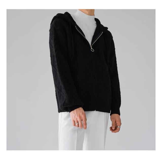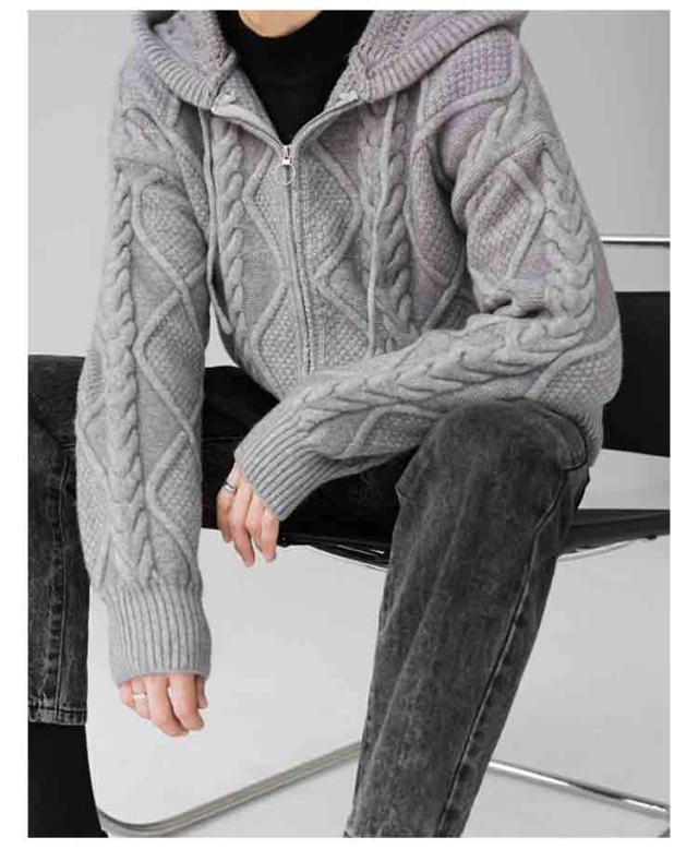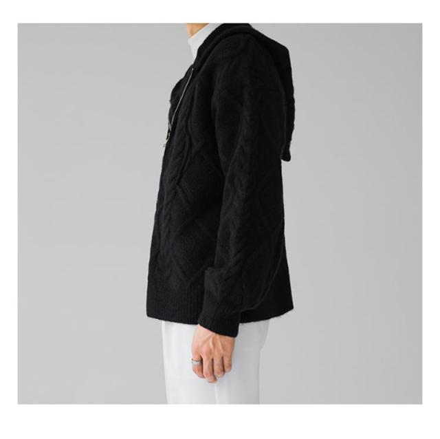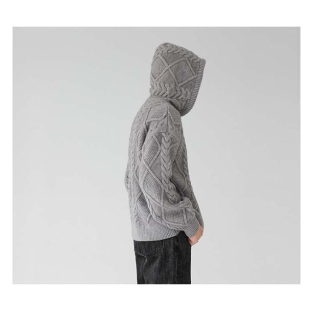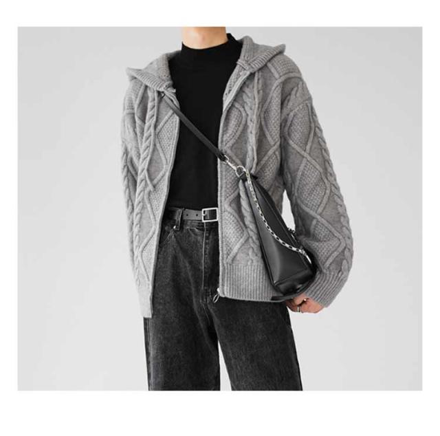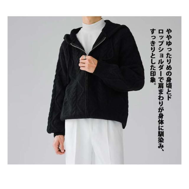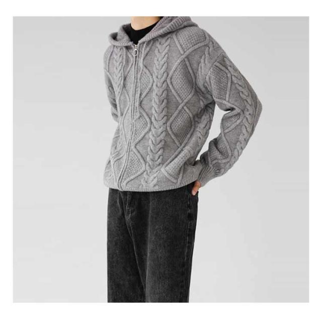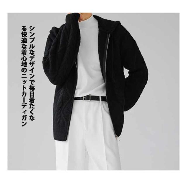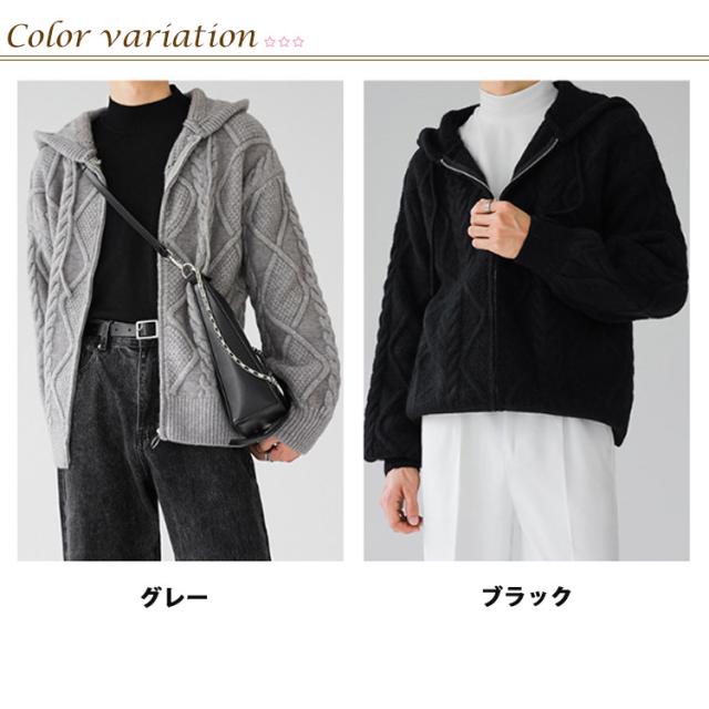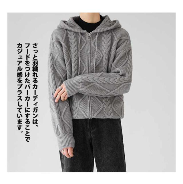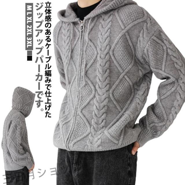 ニットパーカー おしゃれ ニット 厚手 ゆったり グレー フード付き カーディガン ジップアップパーカー メンズ 冬 アウター 羽織り 大人 ニットジャケット 韓国風 ニットカーディガン カジュアル 秋 大きいサイズ ブラック ケーブル編み