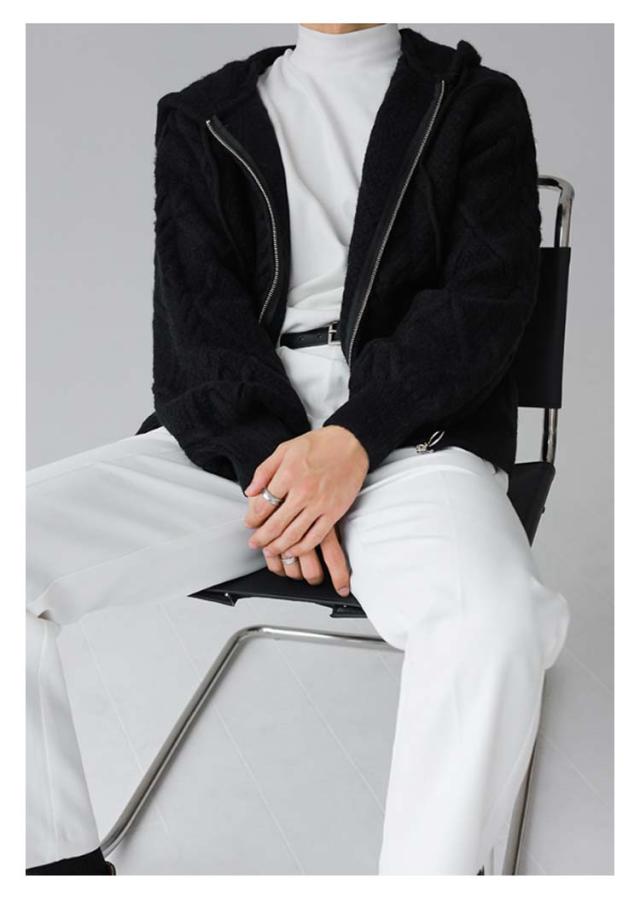| 立体感のあるケーブル編みで仕上げたジップアップパーカーです。 さっと羽織れるカーディガンは、フードをつけたパーカーにすることでカジュアル感をプラスしています。 しっかりと編まれた肉厚な素材ながらも、ふんわりとした軽さが魅力の1枚。 ややゆったりめの身頃とドロップショルダーで肩まわりが身体に馴染み、すっきりとした印象。 シンプルなデザインで毎日着たくなる快適な着心地のニットカーディガン | |