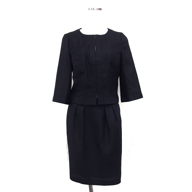 【中古】アナイ ANAYI スカートスーツ セットアップ ノーカラー ショート ジャケット スカート ミニ タイト タック 36