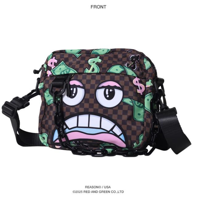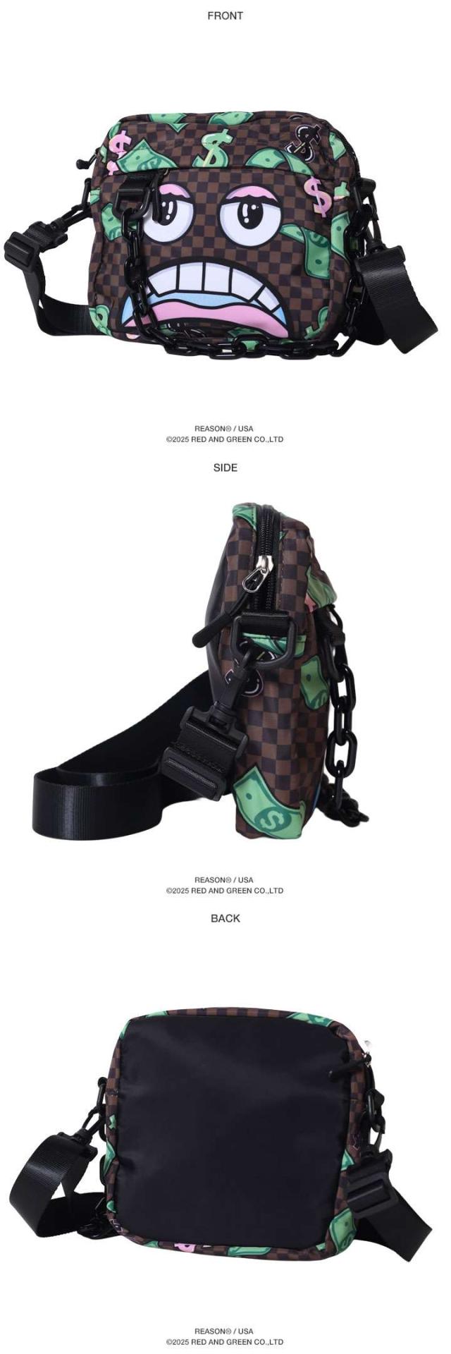 【26%OFF】REASON ミニショルダーバッグ 斜めがけ 横型 大人 小さめ ポーチ ショルダーポーチ メンズ 茶色 モノグラム ブロックチェック かわいい キャラクター 小さいサイズ リーズン 派手 総柄 b系 ヒップホップ ストリート系 ハイ ブランド 2025秋冬 新作 BG1033