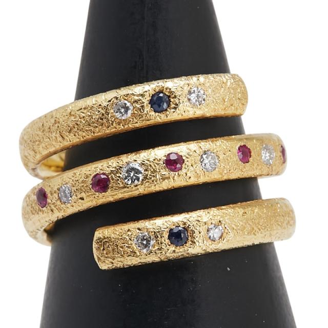 K18YG イエローゴールド ダイヤ ルビー サファイア スパイラル リング 指輪 レディース 10.5号 中古