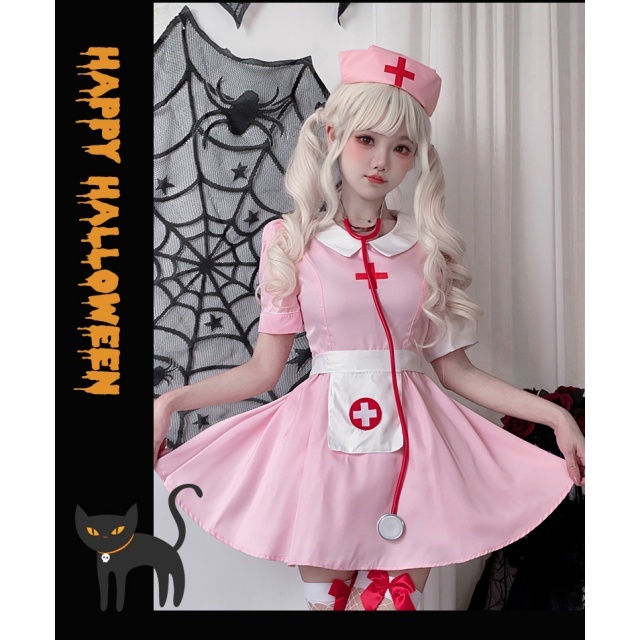 ハロウィンの成人衣装女性ナースピンク日本純欲コスプレセクシードクターナーススカート送料無料