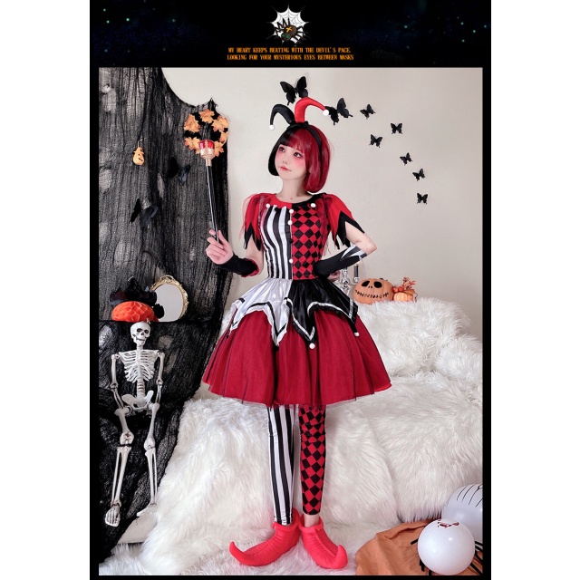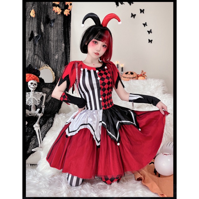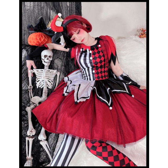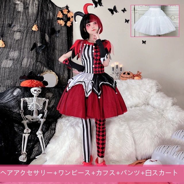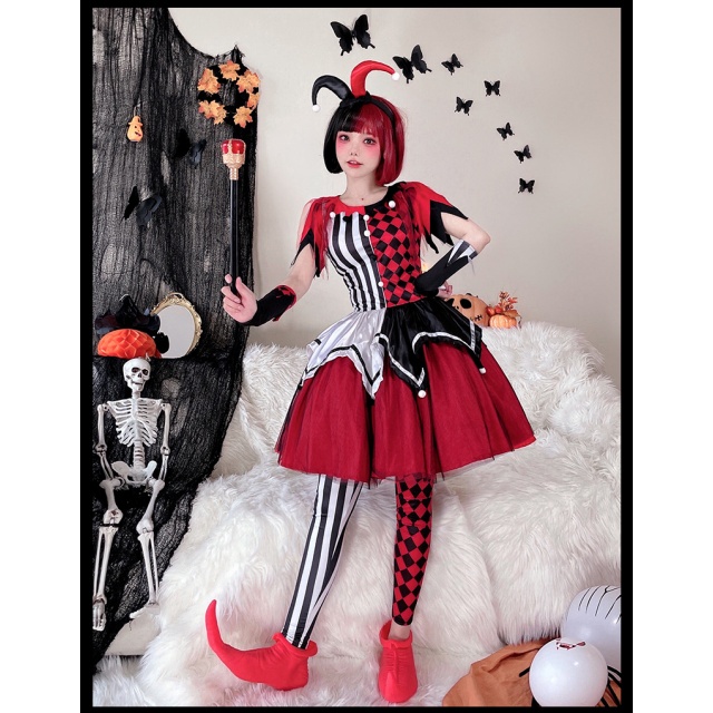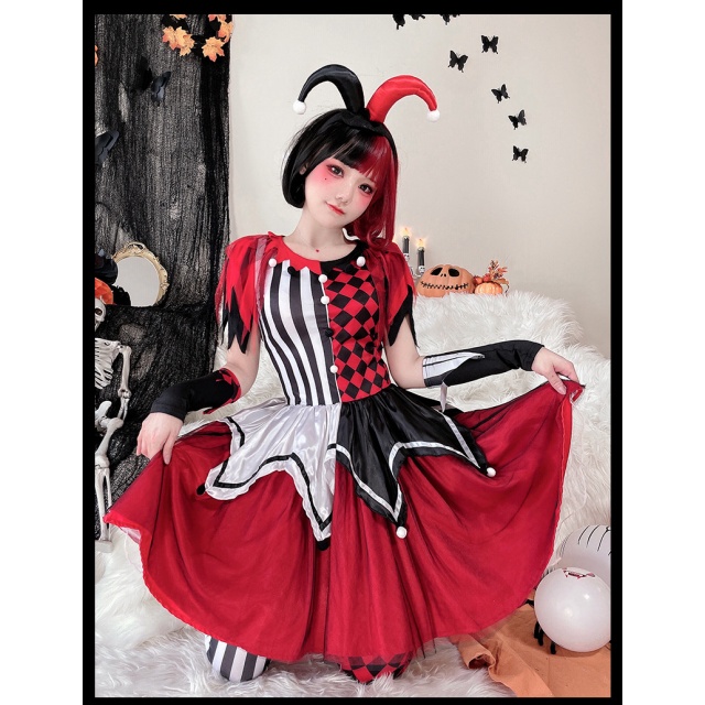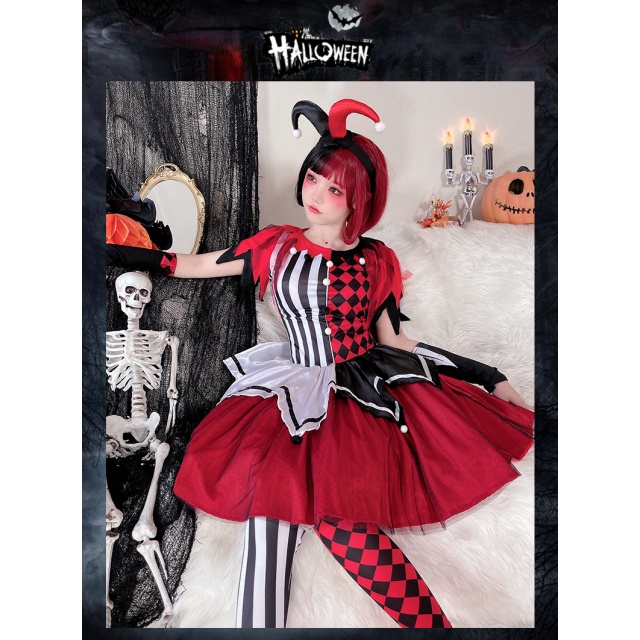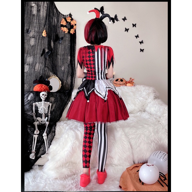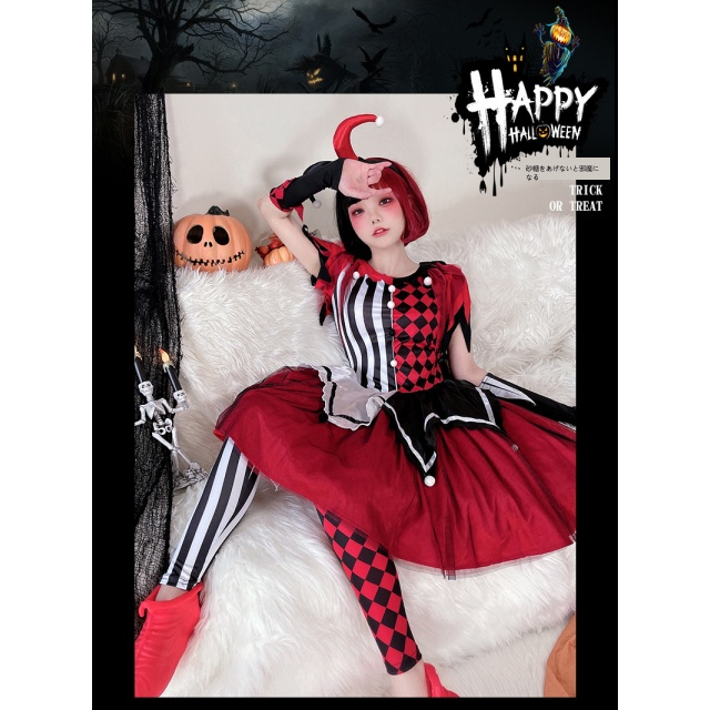 ハロウィンコスチュームサーカス回魂ピエロコスプレ大人ワンピースハリークイン仮装演出コスチューム送料無料
