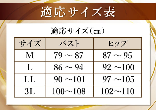 【カラー】ブラック、ベージュ【適応サイズ(約)】●M:バスト/79-87cm、ヒップ/87-95cm●L:バスト/86-94cm、ヒップ/92-100cm●LL:バスト/90-101cm、ヒップ/97-105cm●3L:バスト/100-108cm、ヒップ/102-110cm【材質】ナイロン90%、ポリウレタン10%【製造国】中国【メーカー】株式会社G-STARS