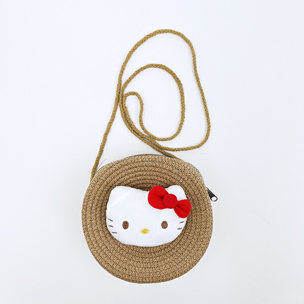 サンリオ ハローキティ ストロー素材ラウンド製ショルダーバッグ かごバッグ Sanrio