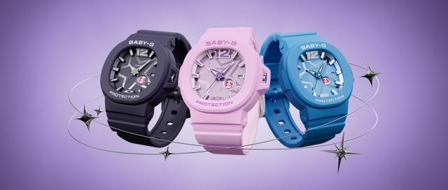 アクティブな女性に向けた耐衝撃・カジュアルウオッチ BABY-Gから、文字板に煌めく星をあしらったY3Kスタイルのウオッチです。