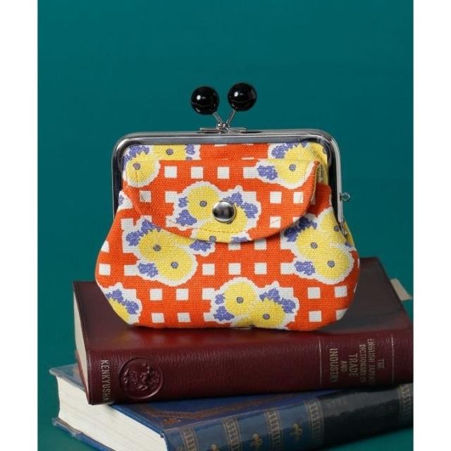 格子柄に花柄を重ねた、レトロポップな印象の親子がま口。中に小さい口金が付いた親子タイプ。小銭とお札を別けて入れられる便利なお財布です。
