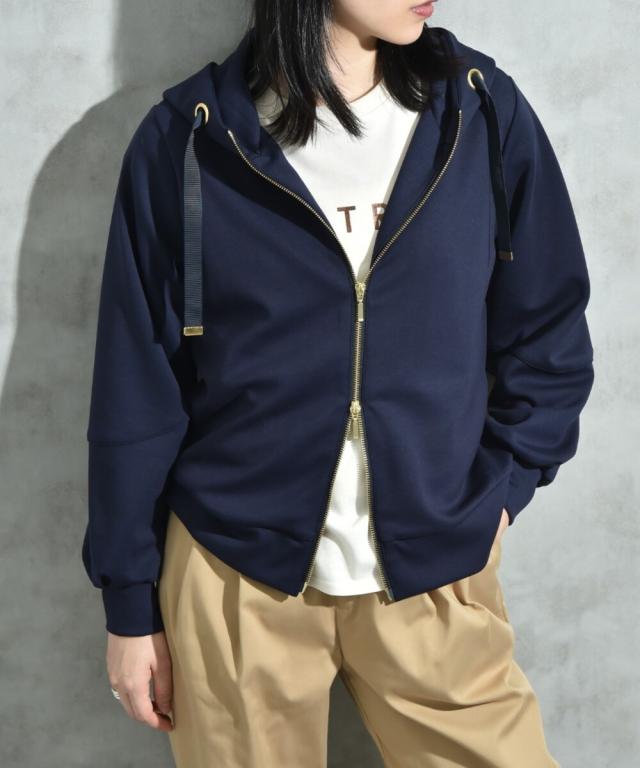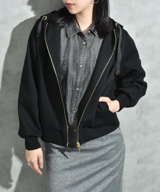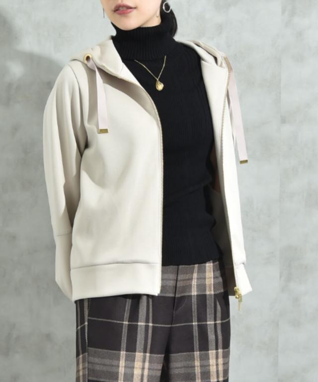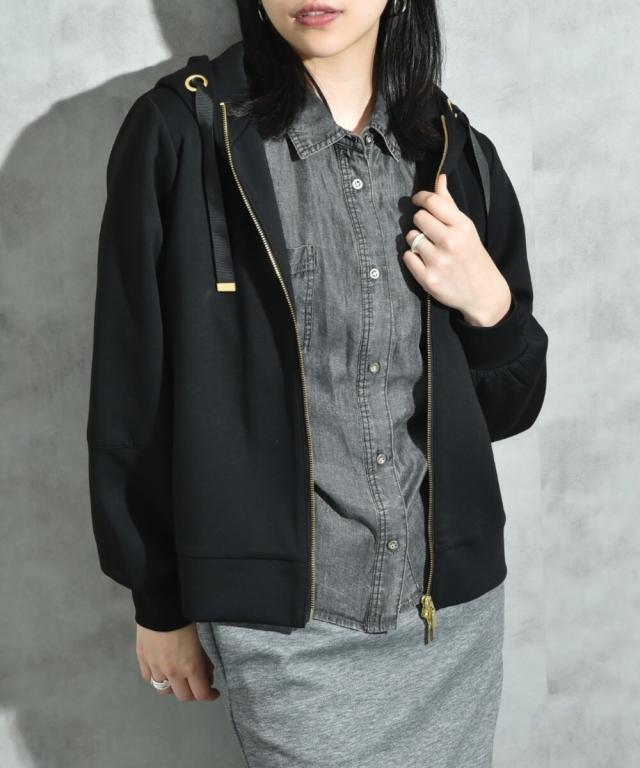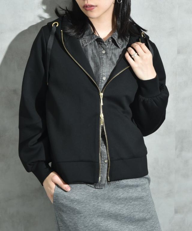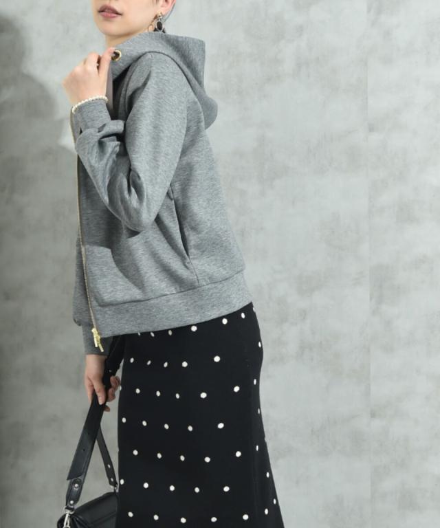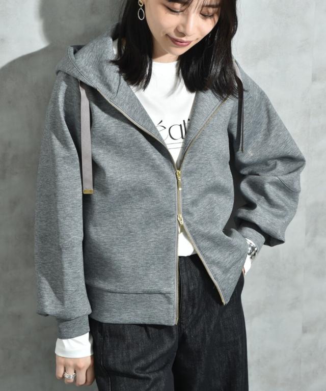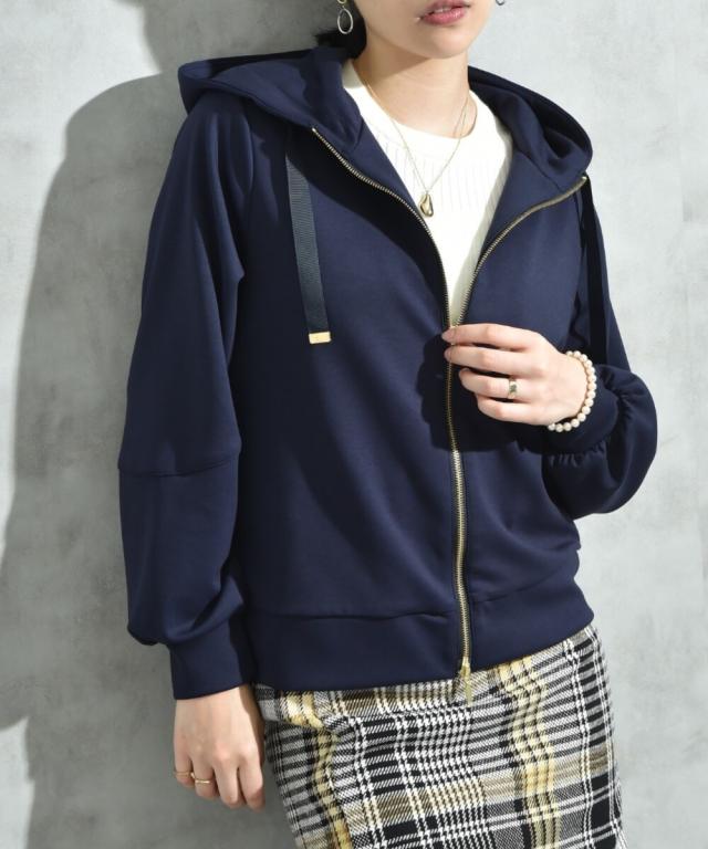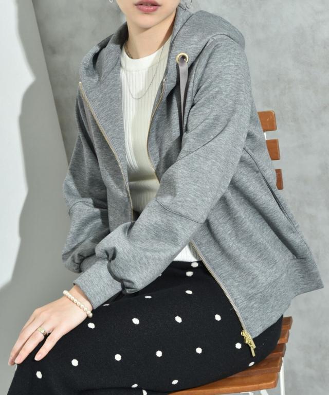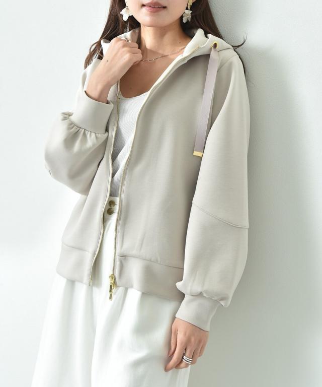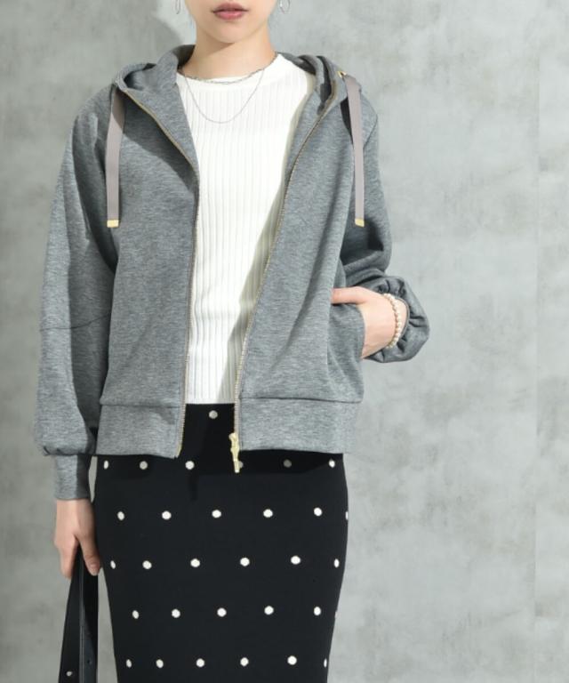 本体は肌さわりの良く上質なダンボールニット素材を使用。優しく包まれるような着心地がポイントです。一見カジュアルなアイテムですが、コンパクトなすっきりしたシルエットが魅力です。袖に切替を入れランタンスリーブでモードな印象にも。他のシンプルパーカーとさりげない差がつくお勧めな1枚です。また両開きのゴールドファスナーを使用し、高級感ある大人カジュアルコーデにきまります。