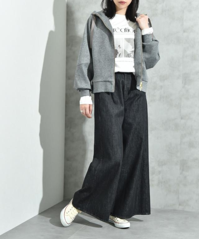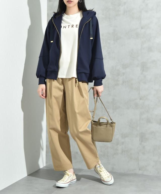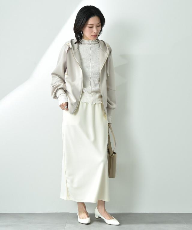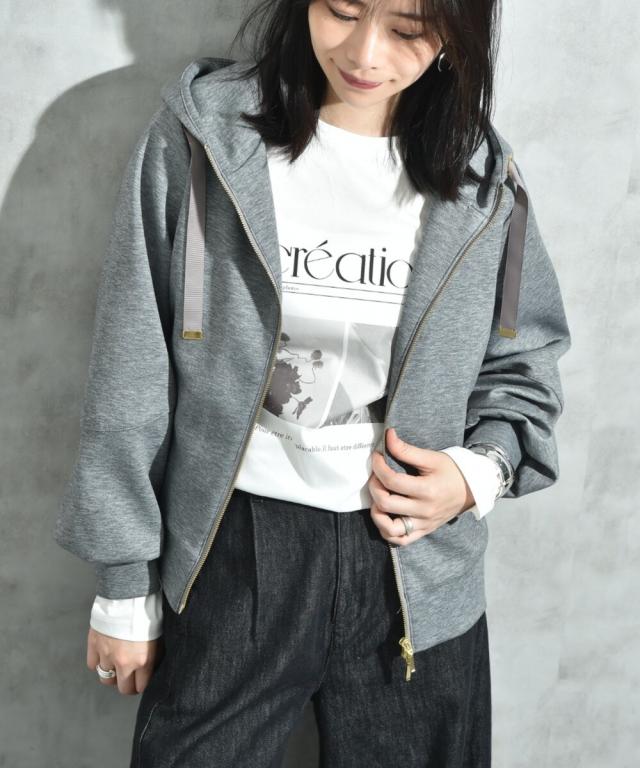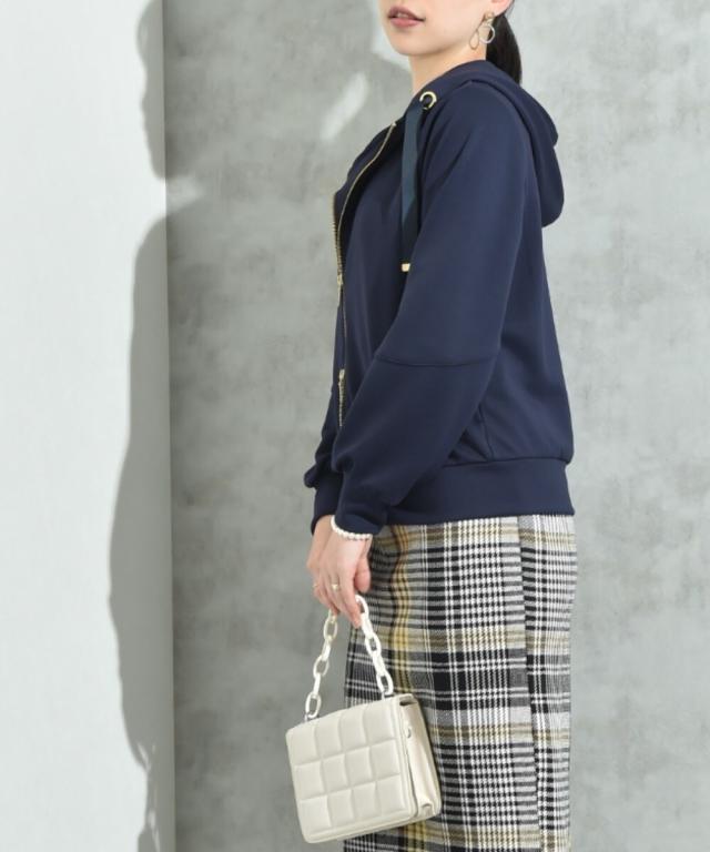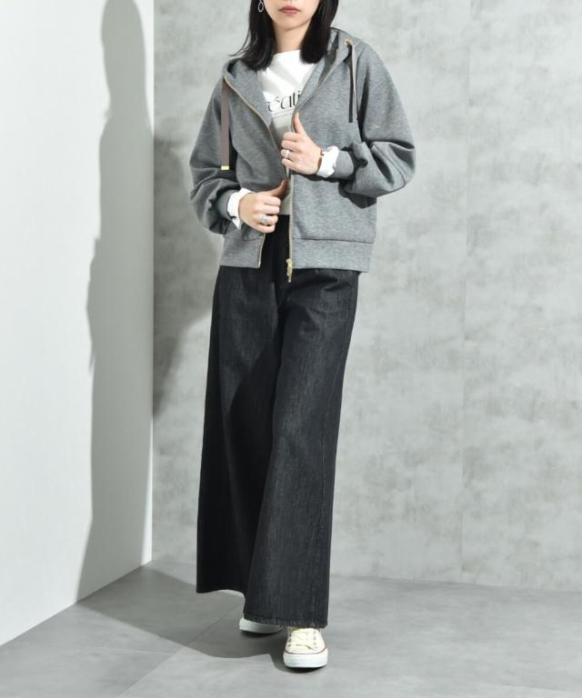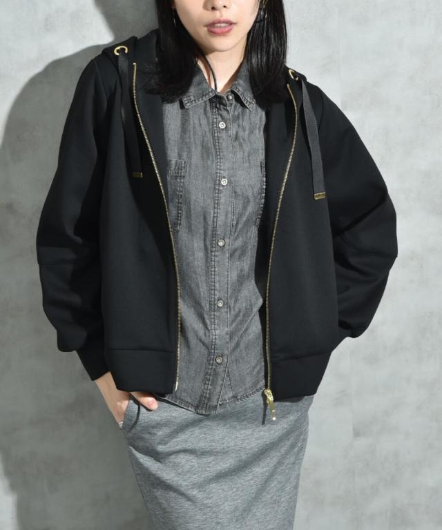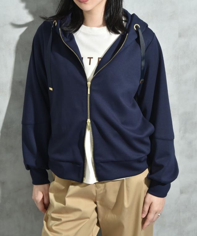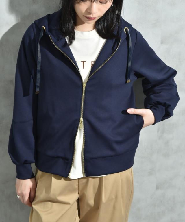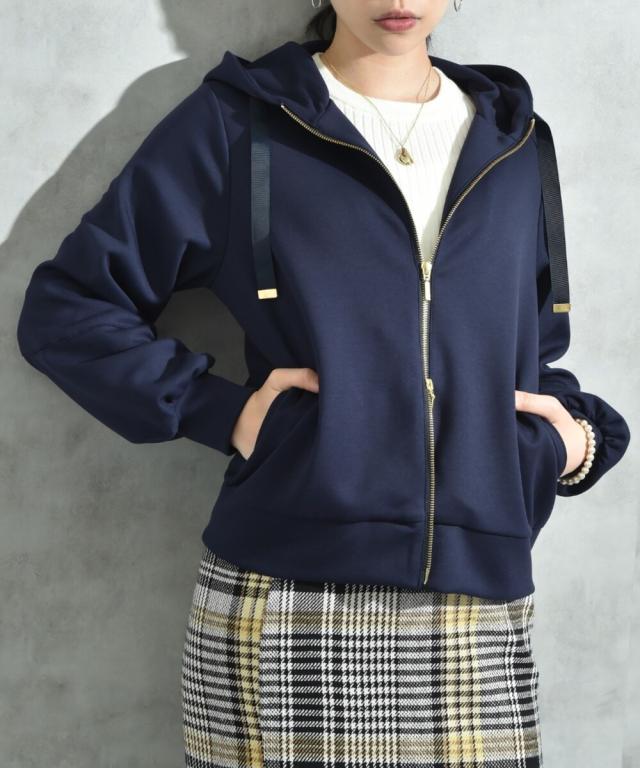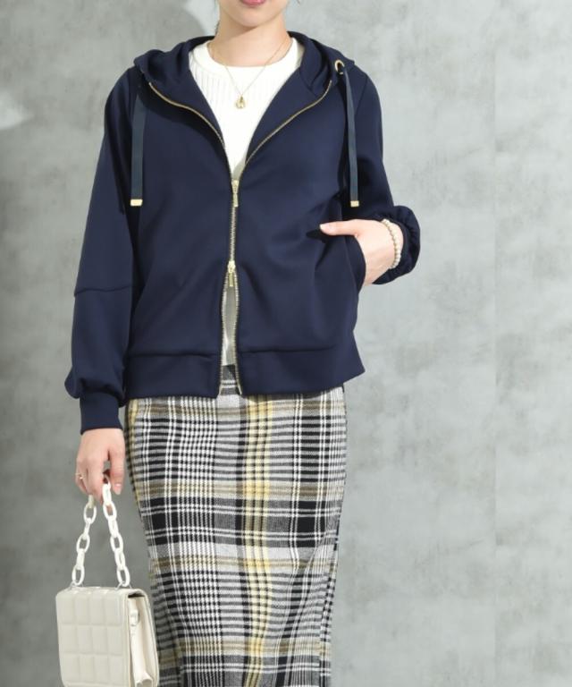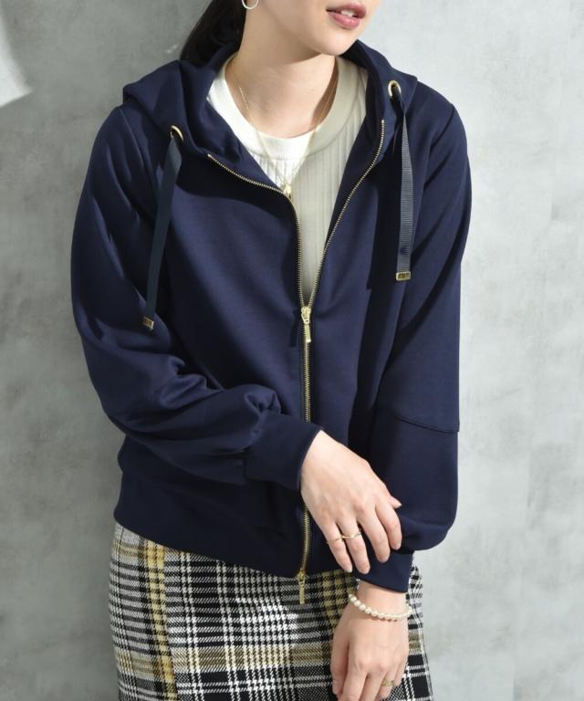 本体は肌さわりの良く上質なダンボールニット素材を使用。優しく包まれるような着心地がポイントです。一見カジュアルなアイテムですが、コンパクトなすっきりしたシルエットが魅力です。袖に切替を入れランタンスリーブでモードな印象にも。他のシンプルパーカーとさりげない差がつくお勧めな1枚です。また両開きのゴールドファスナーを使用し、高級感ある大人カジュアルコーデにきまります。